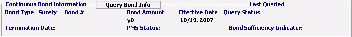 Click this button to use the CBP bond query function to retrieve the bond information or verify that it is correct. This information will auto-fill with the information that is on file with CBP. |