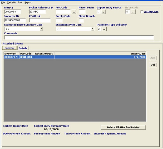 Enter the importer ID for this reconciliation entry. |