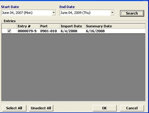 Enter the date range (start/end date) and select the desired entry(s)