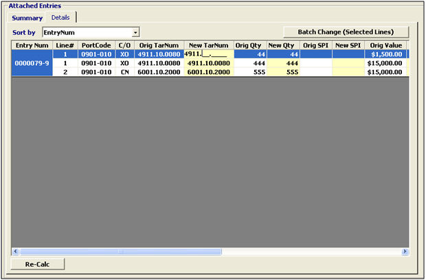 Once you've made the necessary change, click the Re-Calc button to re-calculate your entry information